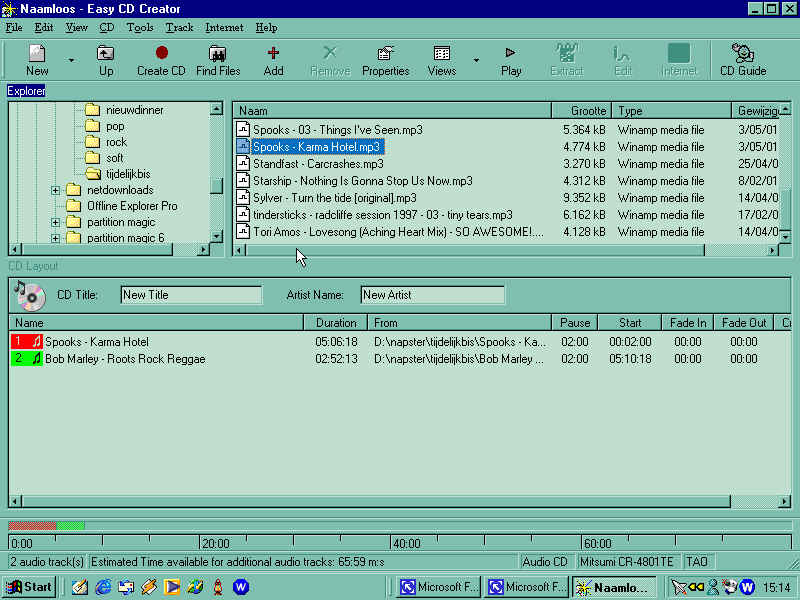 of doen dit echter automatisch zij branden direct .mp3 bestanden in .cda