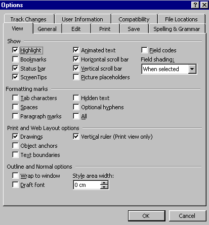 - view(beeld) : welke menubalken moeten afgebeeld worden