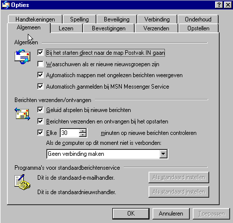 Zoek naar de items 'opties' of 'preferences' ergens in de