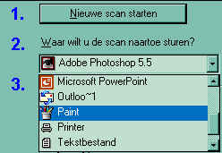 Scanners en beeldverwerkingEen scanner zoals de HP-scanner kan van een afbeelding een digitale weergave maken die door een beeldverwerkingsprogramma zoals Photoshop en Paint Pro ( Paint behoort tot de Windows uitrusting) terug kan omgezet worden in een visueel beeld. Dit laatste programma laat tevens gesofistikeerde bewerkingen op de afbeelding toe !